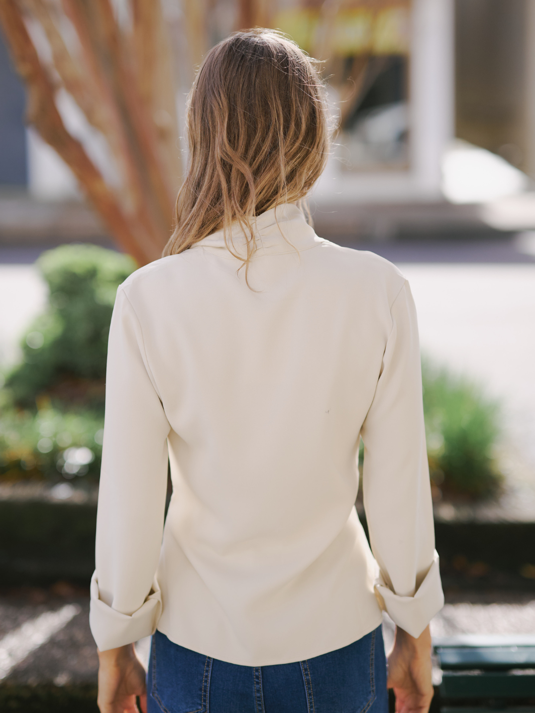 • Long sleeve, relaxed crossover top